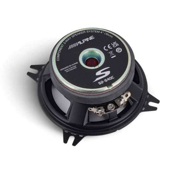 Alpine S2-S40C 10cm átmérőjű komponens hangszóró szett, 45W folyamatos terhelhetőségű. Alpine S2-sorozat: Hi-Res Audio minőség 40kHz, polipropilén, üvegszál és mica kompozit kónusz, rendkívül tiszta és pontos hangzás, nagy hangerő, HAMR nagy kilengésű membránszél